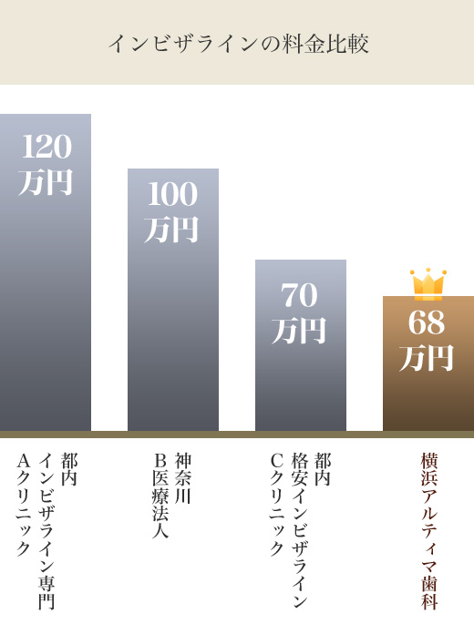 「インビザライン治療をもっと身近に」の理念から、様々な企業努力の末、首都圏で最もリーズナブルな価格設定を実現いたしました。