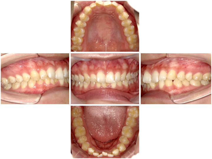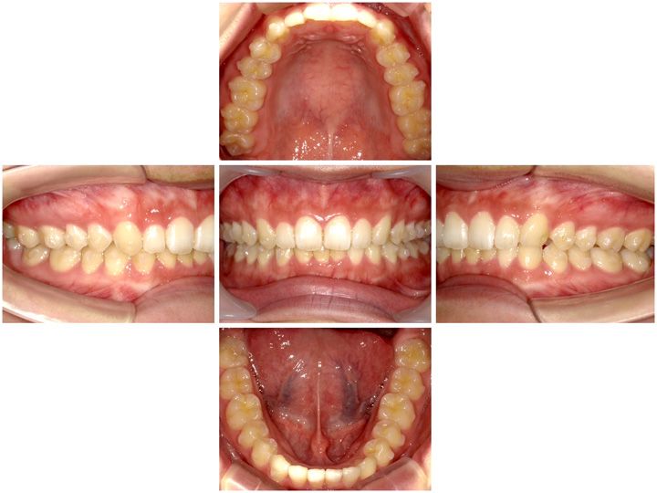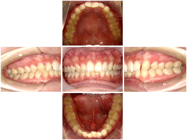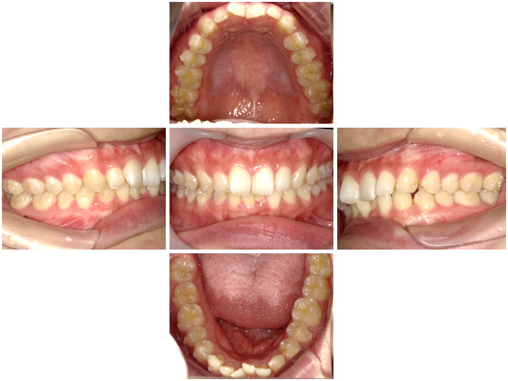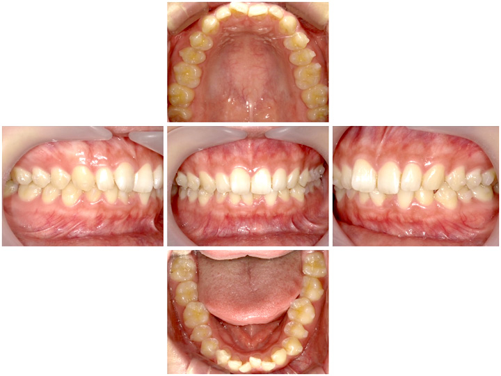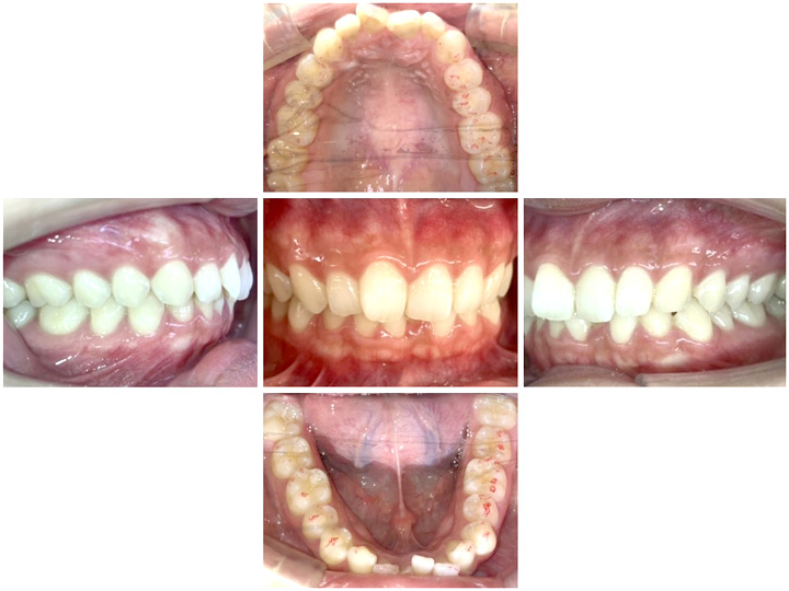 最初のうちは奥歯を後ろに移動させ前歯の並ぶスペースを作る動きになるため、前歯に変化はありません。