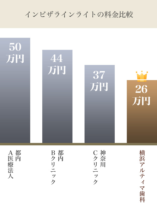 「インビザライン治療をもっと身近に」の理念から、様々な企業努力の末、首都圏で最もリーズナブルな価格設定を実現いたしました。
